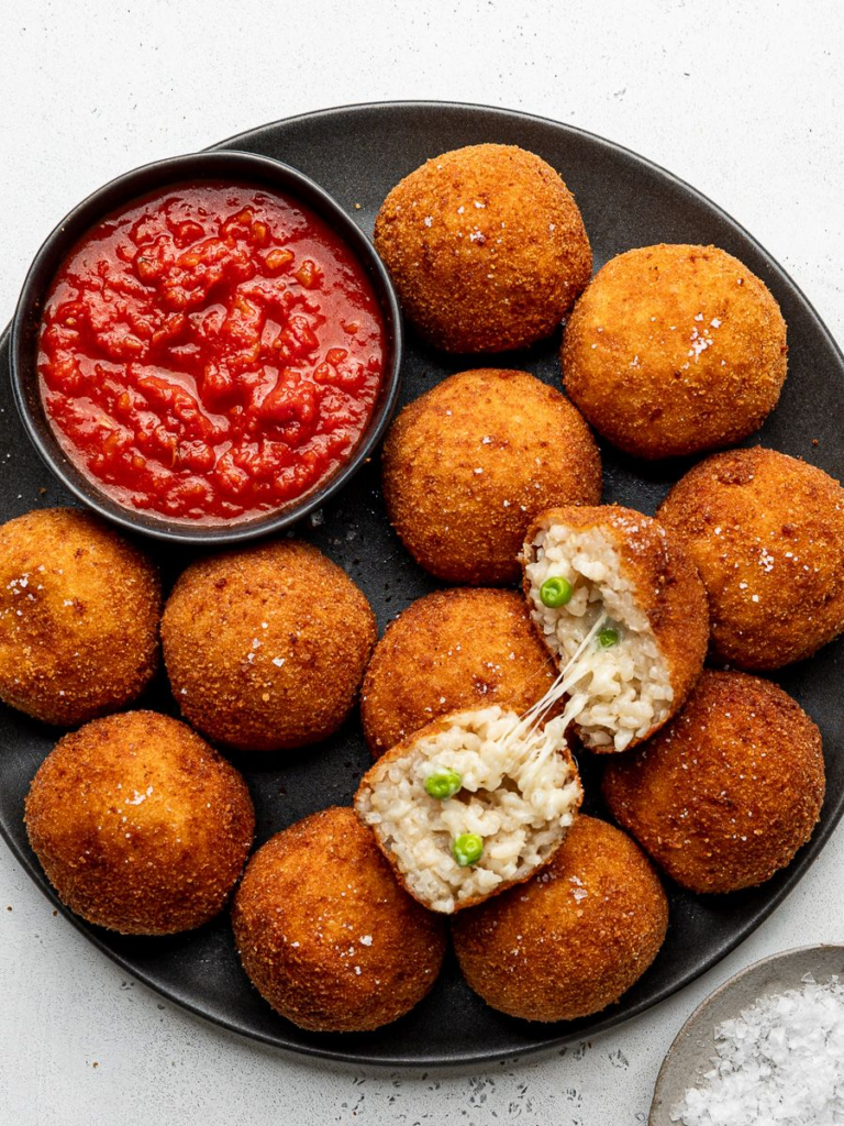 Arancini are a popular Italian street food appetizer and are often served with marinara sauce.